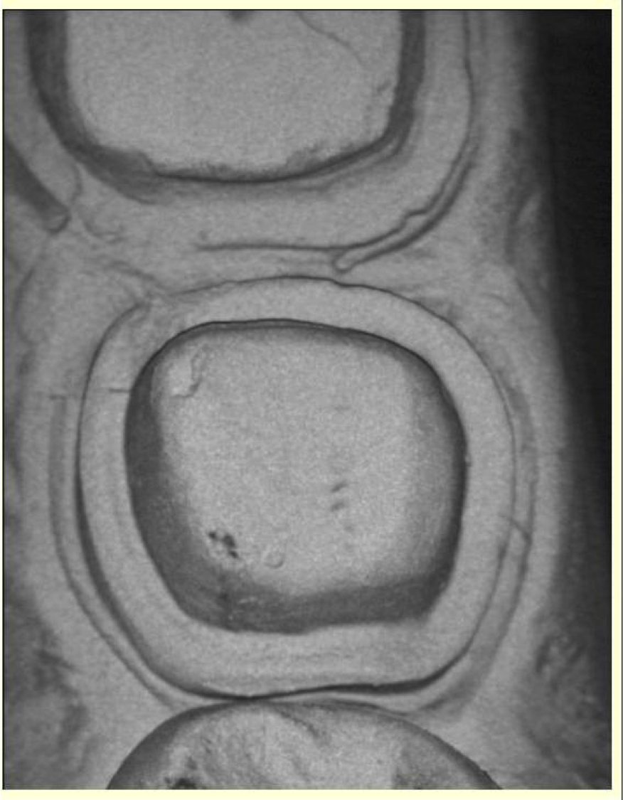 Slightly too much pitch, will hide distal tooth’s height of contour