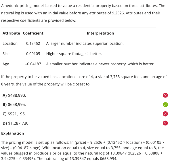 ln(price) = initial value + attributes values