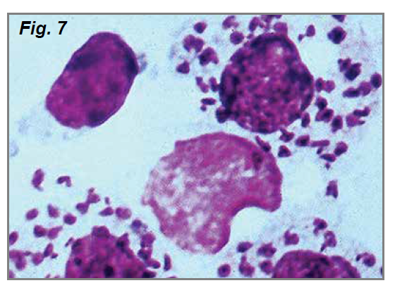 2) Resposta humoral boa: redução da albumina, globulina policlonal (inversão da relação albumina e globulina = alb < glob). Isso é visto com a eletroforese das ptn plasmáticas (base larga e aumentada, diferente do MM que a base é fina e muito grande).