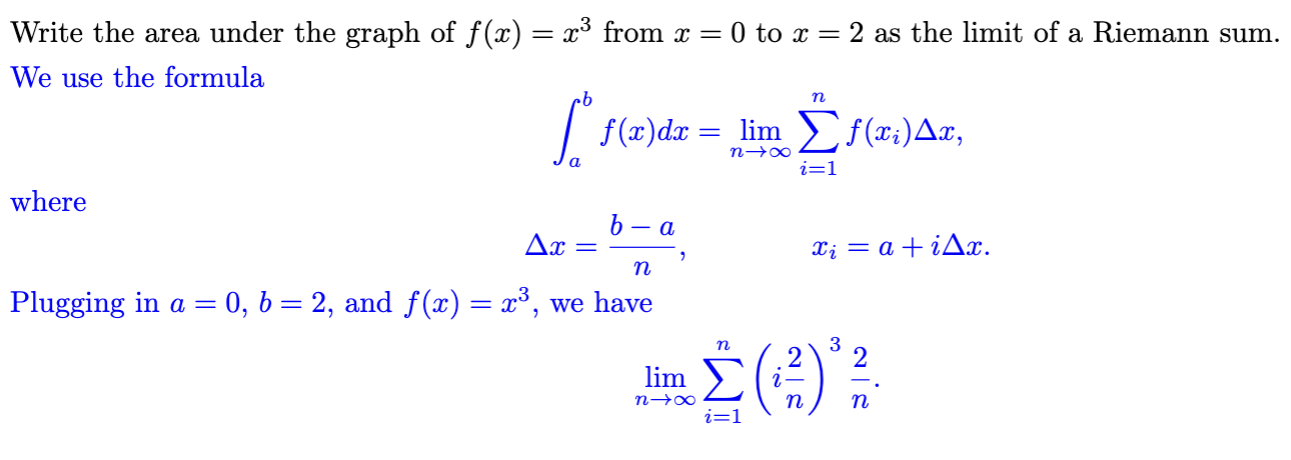 What is the limit of Riemann sum, also what does it mean, also explain how to find the components of it?