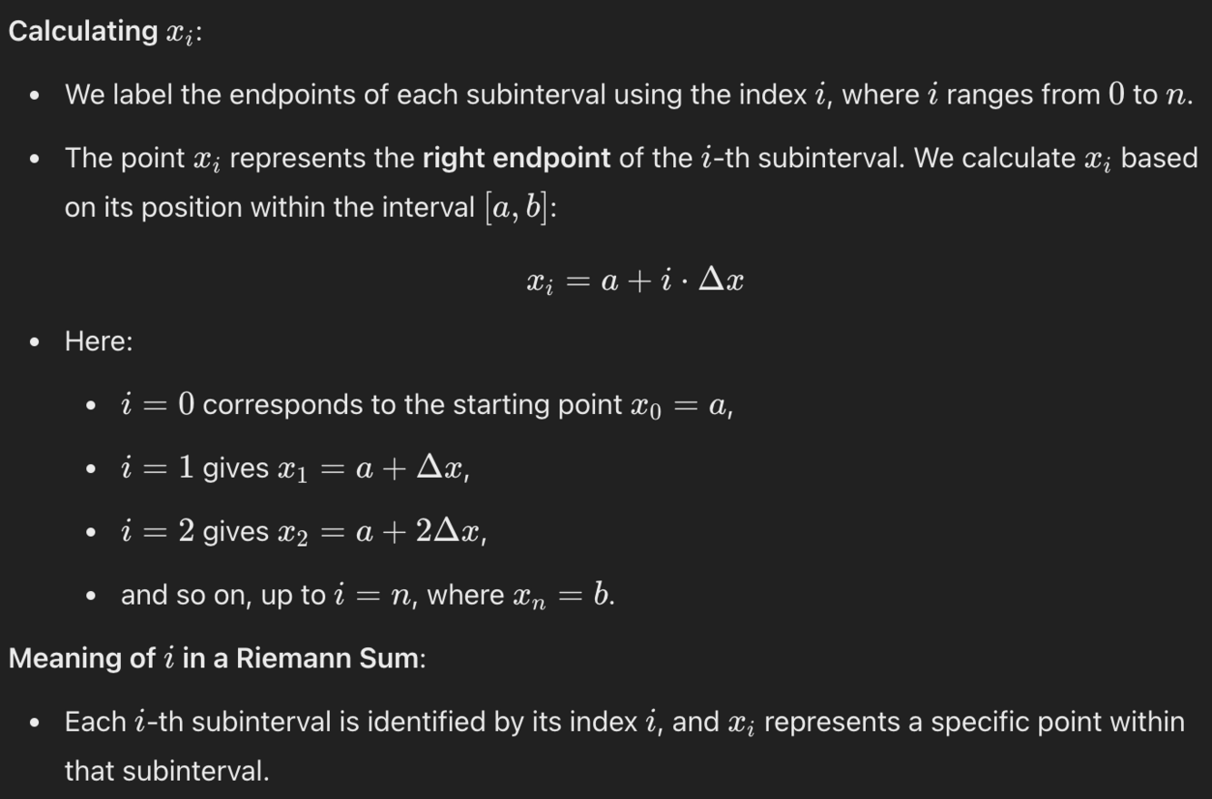 (ig) i is an index that identifies each subinterval in the partition of the interval. xi represents the sample point within each subinterval.