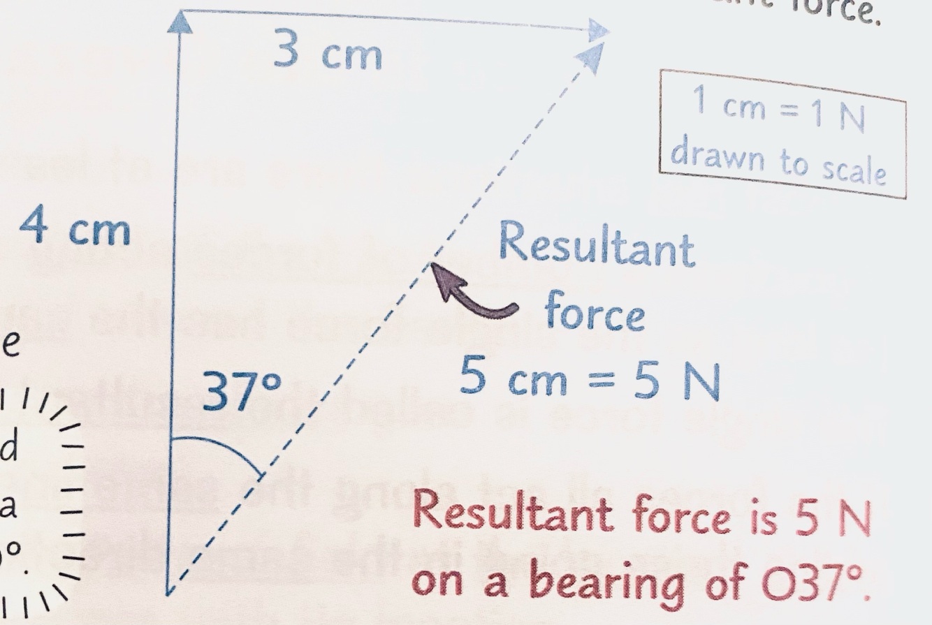 A man is on an electric bicycle that has a driving force of 4N north. However the wind produces a force of 3N east. Find the magnitude and direction of the resultant force