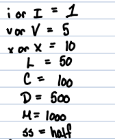 Numeral of lesser value after a larger one is added (e.g. 6 = VI)