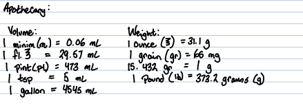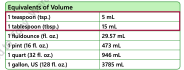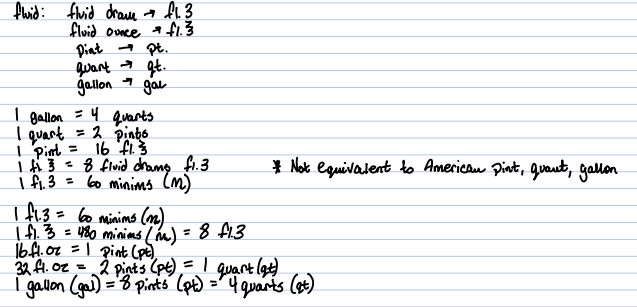 Minimim, fluid ounce, pint, tasp and gallon to mL