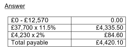 £50,270 - £12,570 = £37,700. £37,700 x 11.5% = £4,335.50