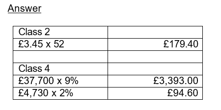 Ria is self-employed. In the current tax year, she had taxable profits of £55,000. Calculate, showing all your workings, her liability to National Insurance contributions (NICs).