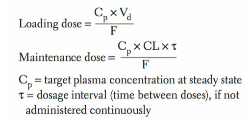 What is the formula for loading dose and maintenance dose?