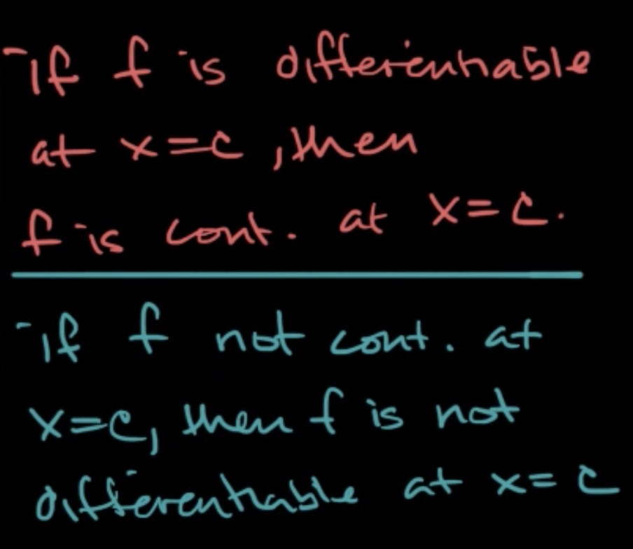 This DOES NOT mean that if f is continuous at x=c then f is differentiable at x=c.