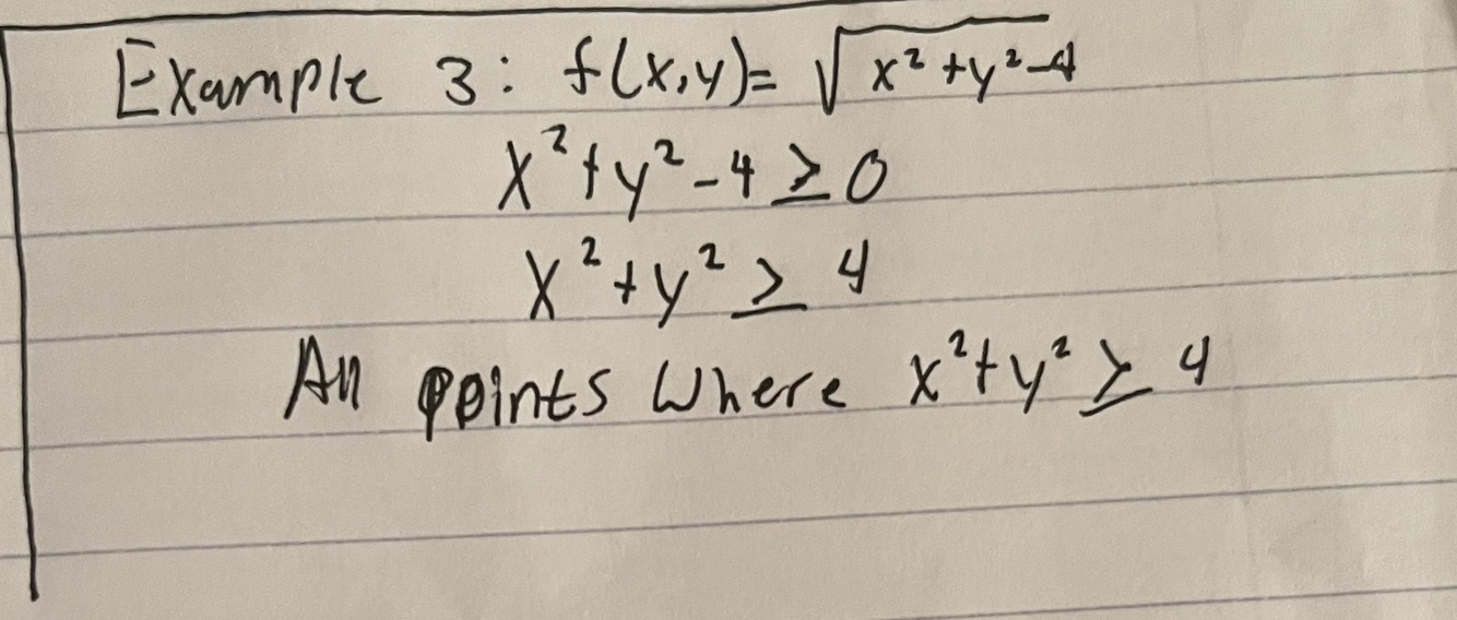 Domain of f(x,y) = √(x^2 + y^2 -4)