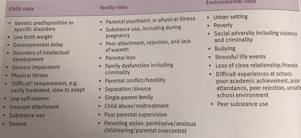 Differences in childhood/adolescent presentation of common psychiatric disorders: self-harm