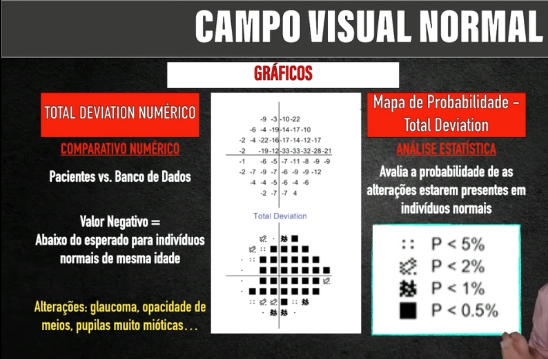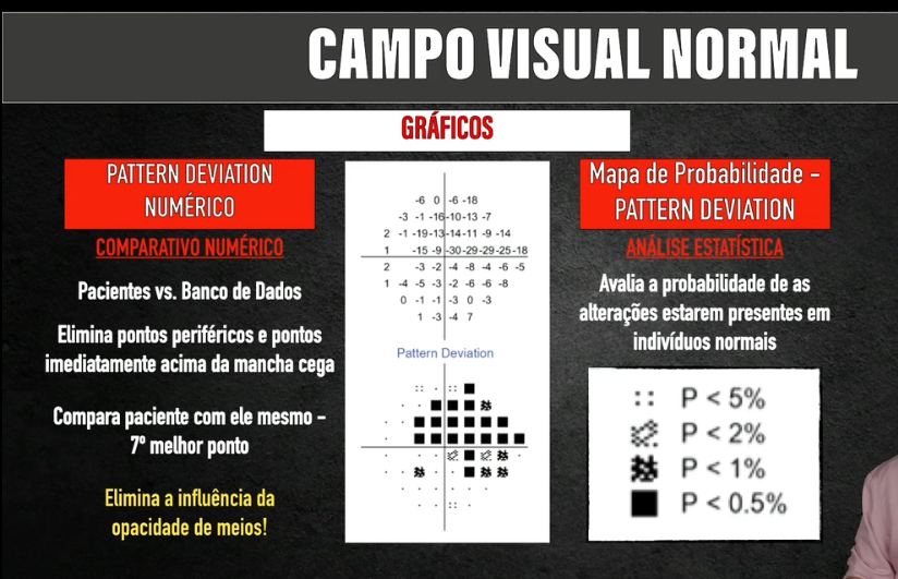 PATTERN DEVIATION MAP: 3 pontos ou mais adjacentes, em localização típica do glaucoma, com P <5%, sendo um deles com P< 1%