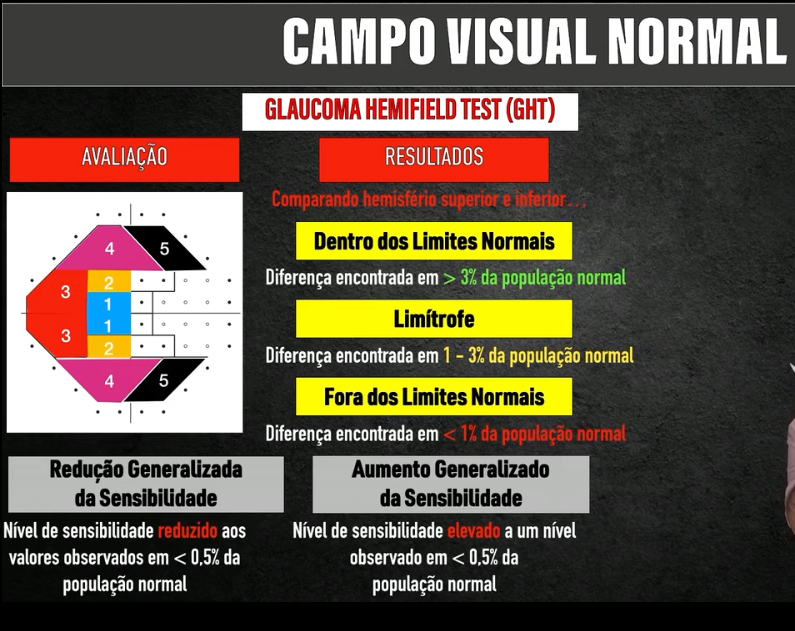 Obs: Redução ou aumento generalizado da sensibilidade não é testado comparando hemisférios. Já é uma análise geral.