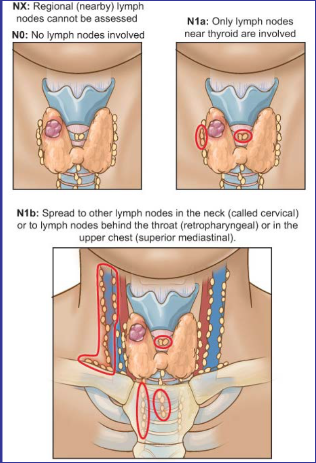 N1a - Tends to affect local lymph nodes around the thyroid gland