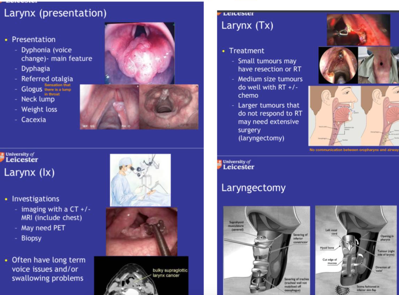 * Endoscopic investigation β necessary for head and neck cancers involving the nasal cavity, pharynx and larynx