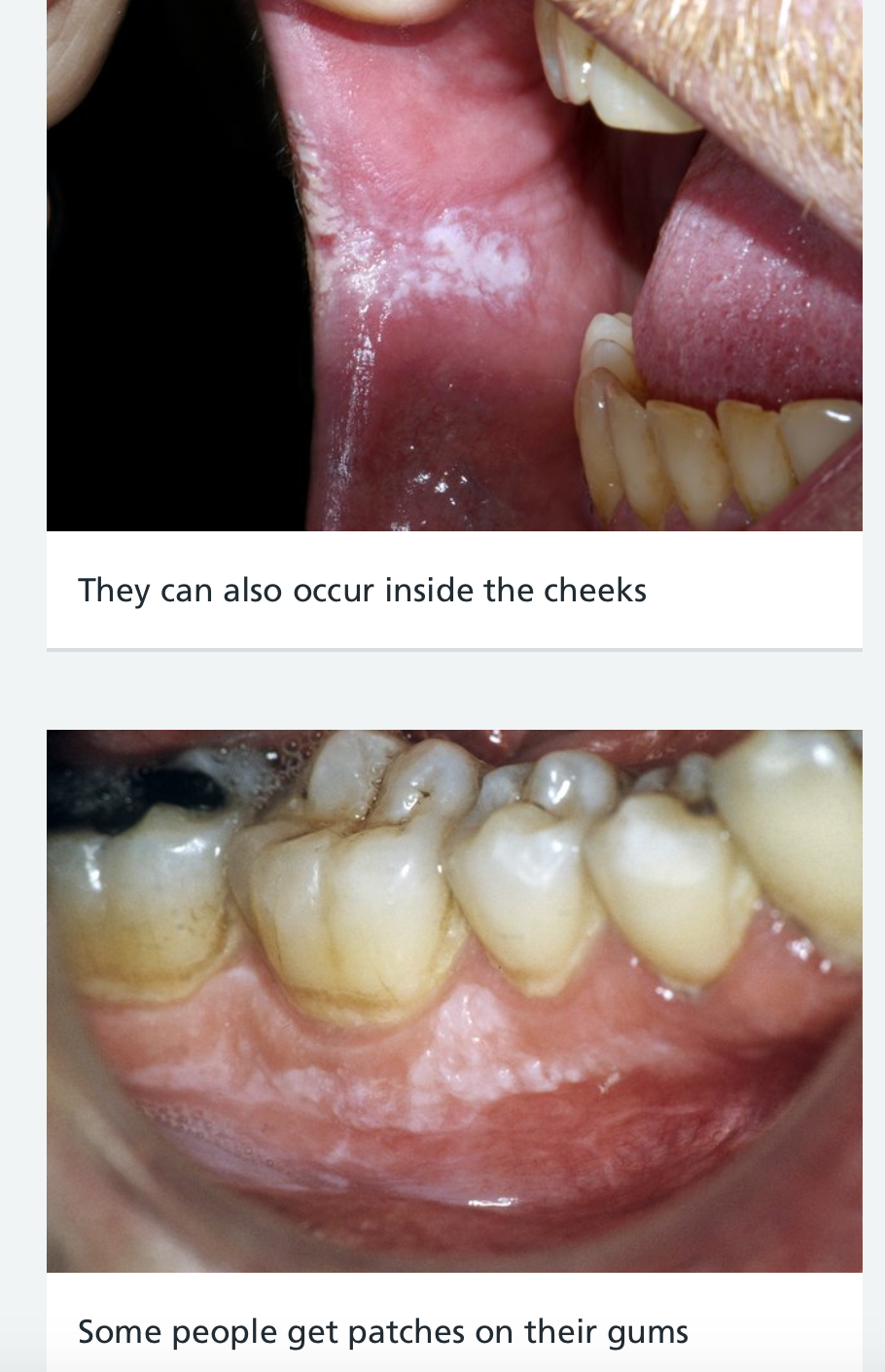 You can also get patches on the floor or roof of your mouth.