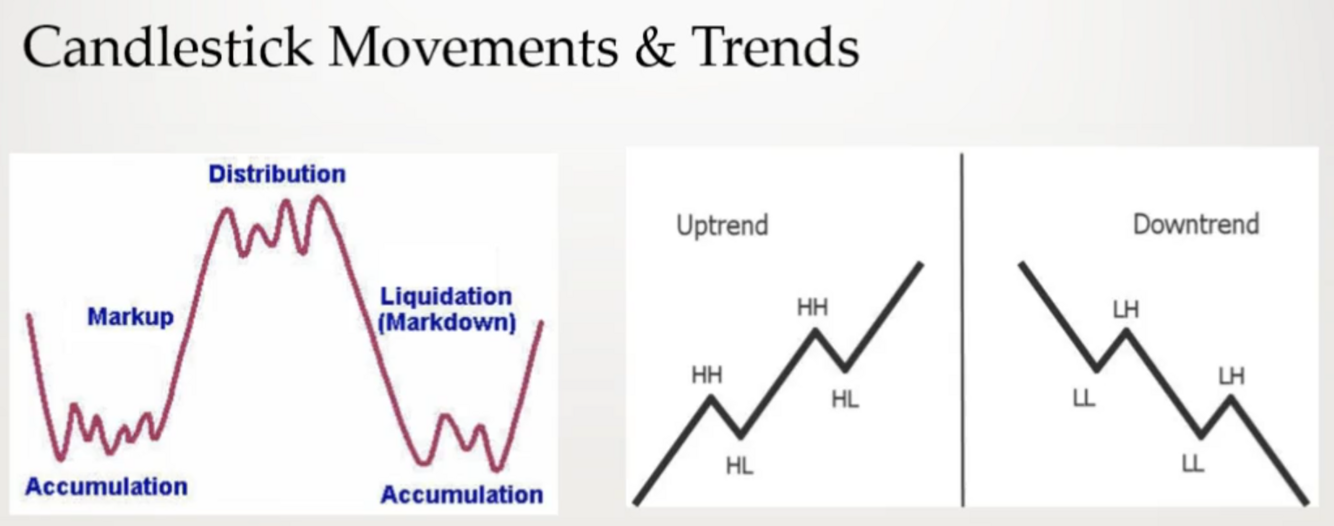 Accumulation is candlestick movement after liquidation (markdown). Whereas Distribution is candlestick movement after a (markup) breakout.
