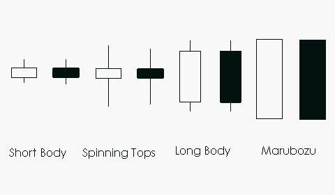 Long, and Short Bodies; Marubozo and Spinning Tops
