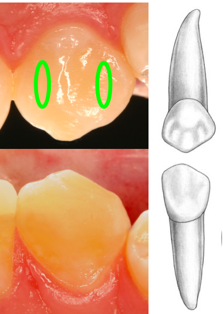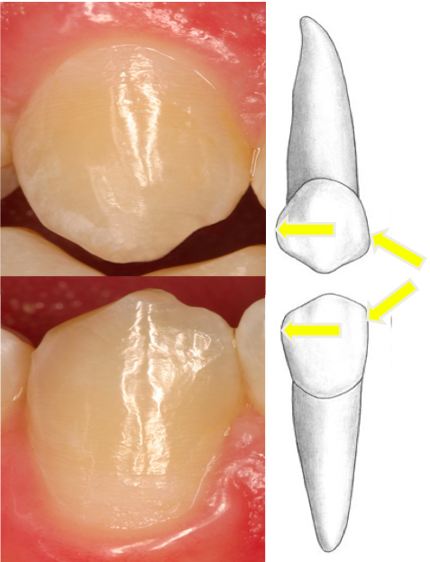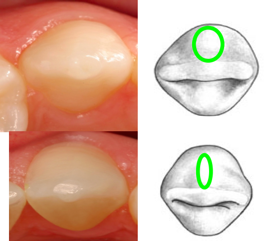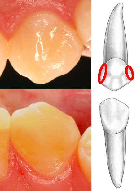 Lingual view: cingulum size/location