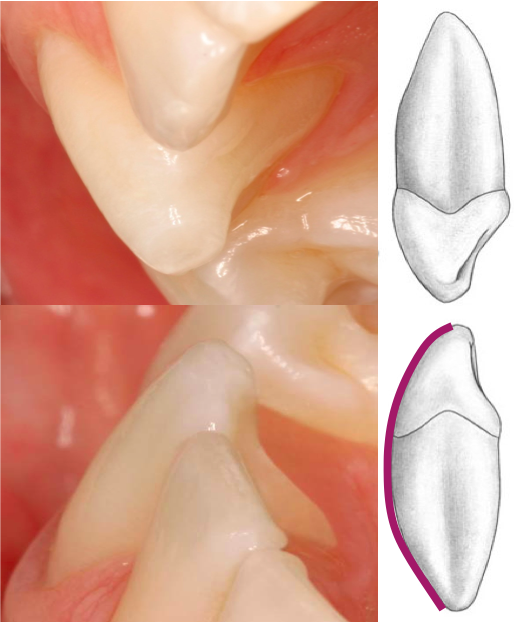 Buccal view: comparison of mesial outline