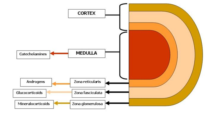 Describe the anatomy of the adrenal cortex?