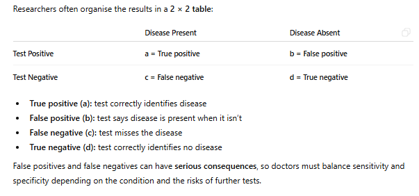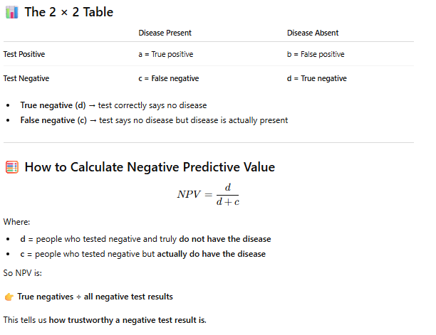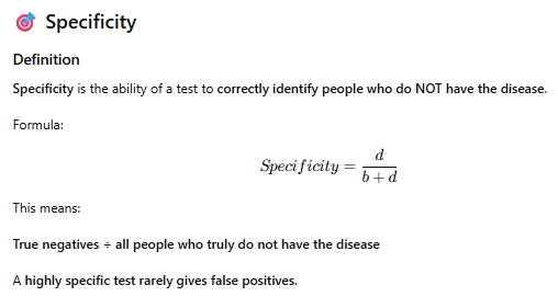 👉 If a highly sensitive test is negative, the disease is very unlikely.