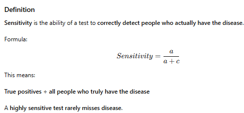 Sensitivity is the ability of a test to correctly detect people who actually have the disease.