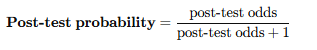 The image shows how to convert post-test odds into post-test probability using this formula: