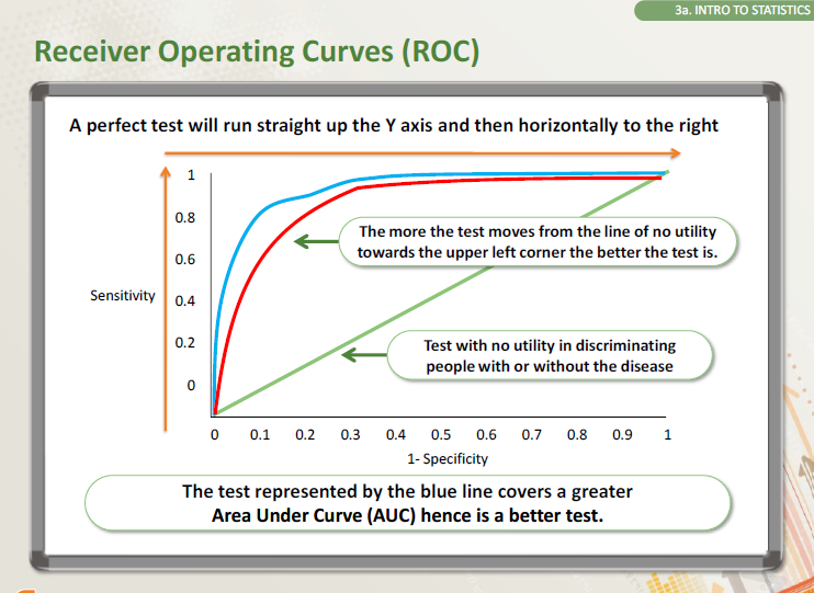 A Receiver Operating Characteristic (ROC) curve is a graph used to evaluate how good a diagnostic test is at distinguishing between people who have a disease and those who do not.