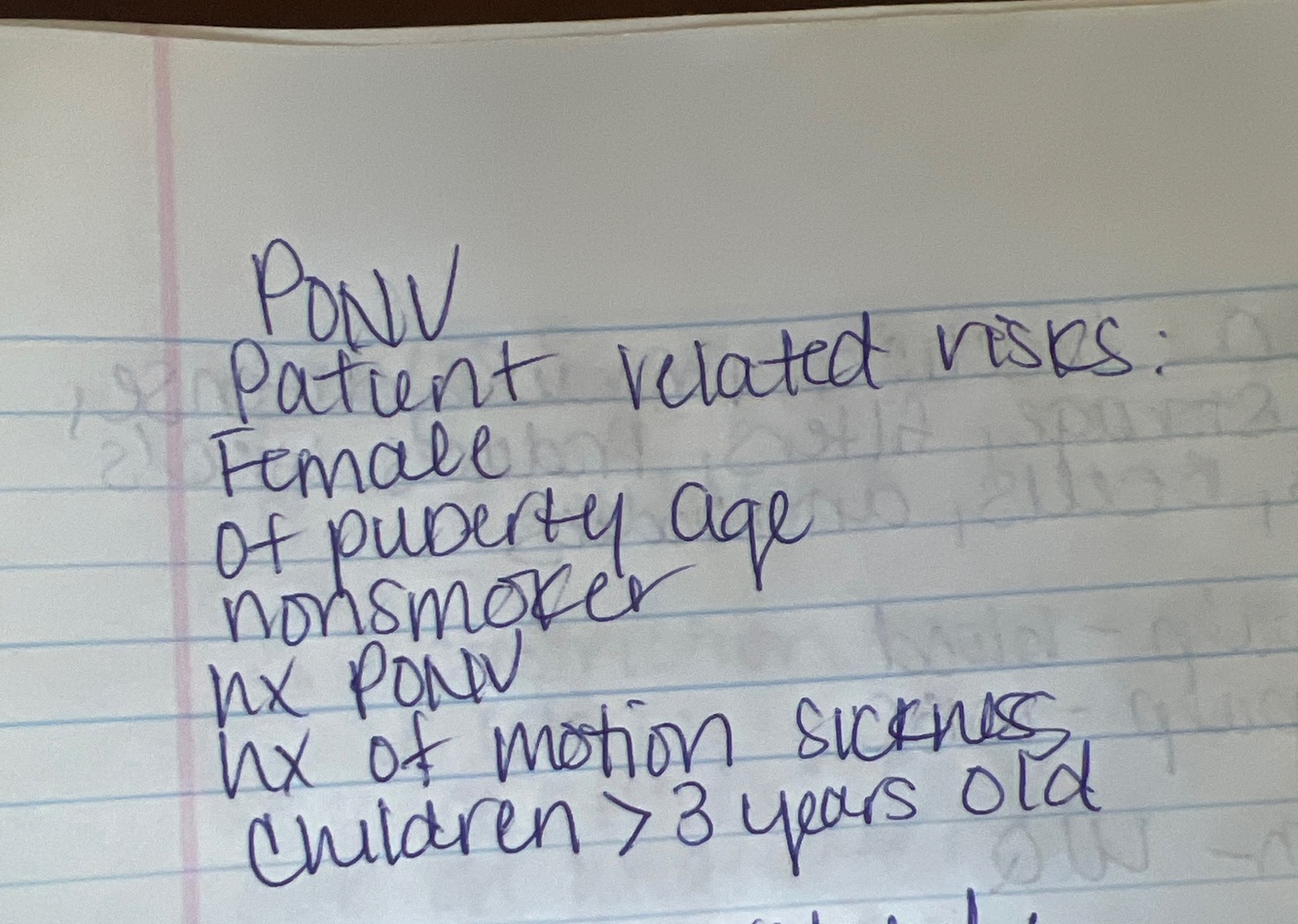 Patient related risk to ponv