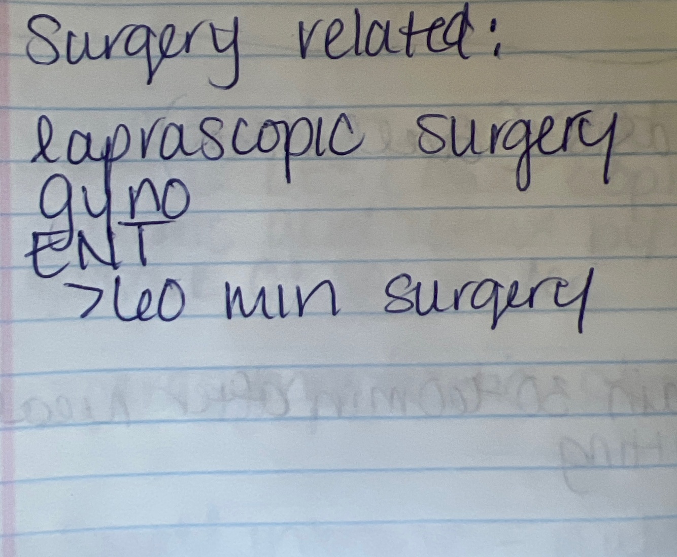 Surgery related risks for ponv