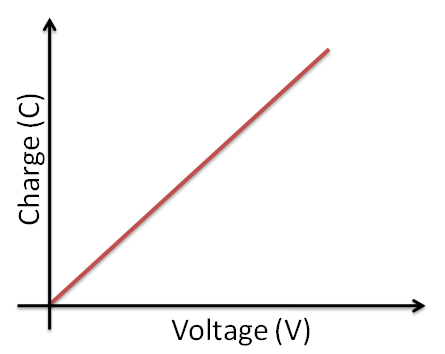 Describe the graph of Charge against Volatage of a Capacitor