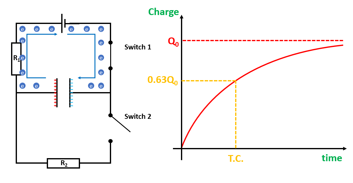 Read off time when charge (or current or voltage) has increased to 63% final