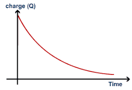 Explain why the rate of change of p.d. between capacitor plates decreases as the capacitor discharges?