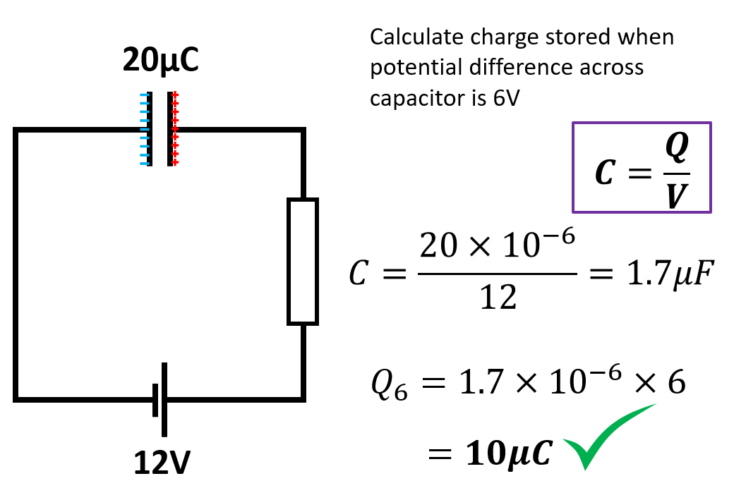 C = capacitance → not the charge!!!
