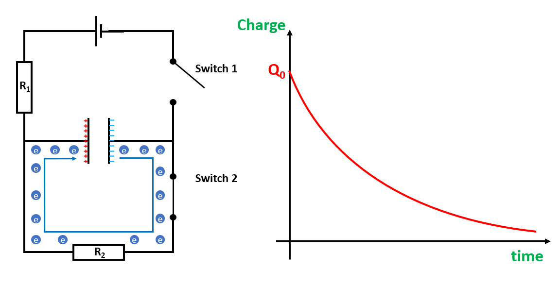 Explain why the I-t graph is exponential when a capacitor discharges