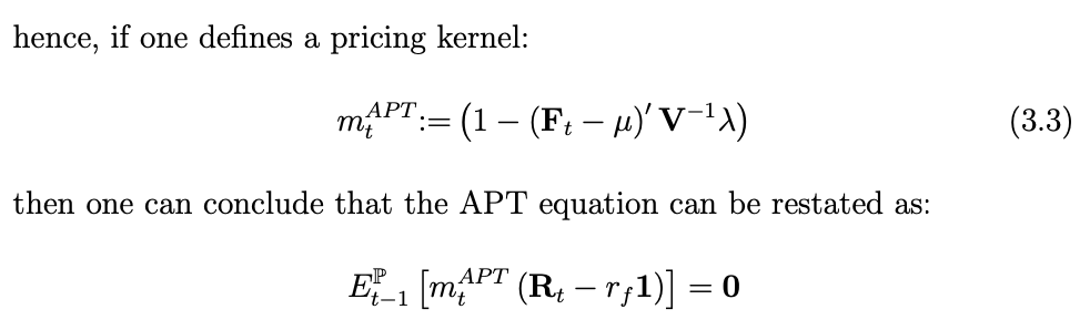 Formula pricing kernel APT