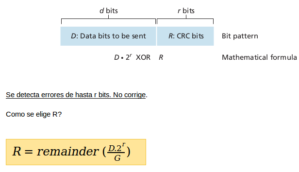 El receptor solo tiene que dividir los datos recibidos (d+r) entre G y si no tiene resto, no se produjo error, si tiene resto hubo un error.