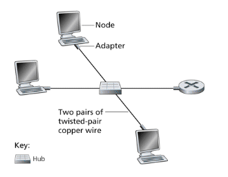 En una topología Ethernet de tipo estrella con hub, todos los host y el router estan conectados directamente a un hub.