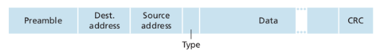Destination address (48 bits): Dirección MAC del adaptador de destino. Si un nodo recibe este frame con su direccion MAC o la dirección broadcast, lo pasa a la capa superior. Si no, lo descarta.
