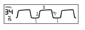 Label the 4 phases of this normal capnography waveform.