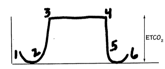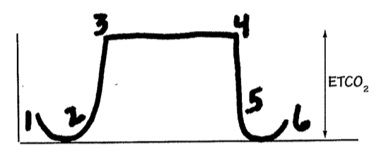 what difines normal ETcO2 wave form in the trachea?