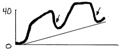 Inspiration to baseline of 0 unless there is rebreathing