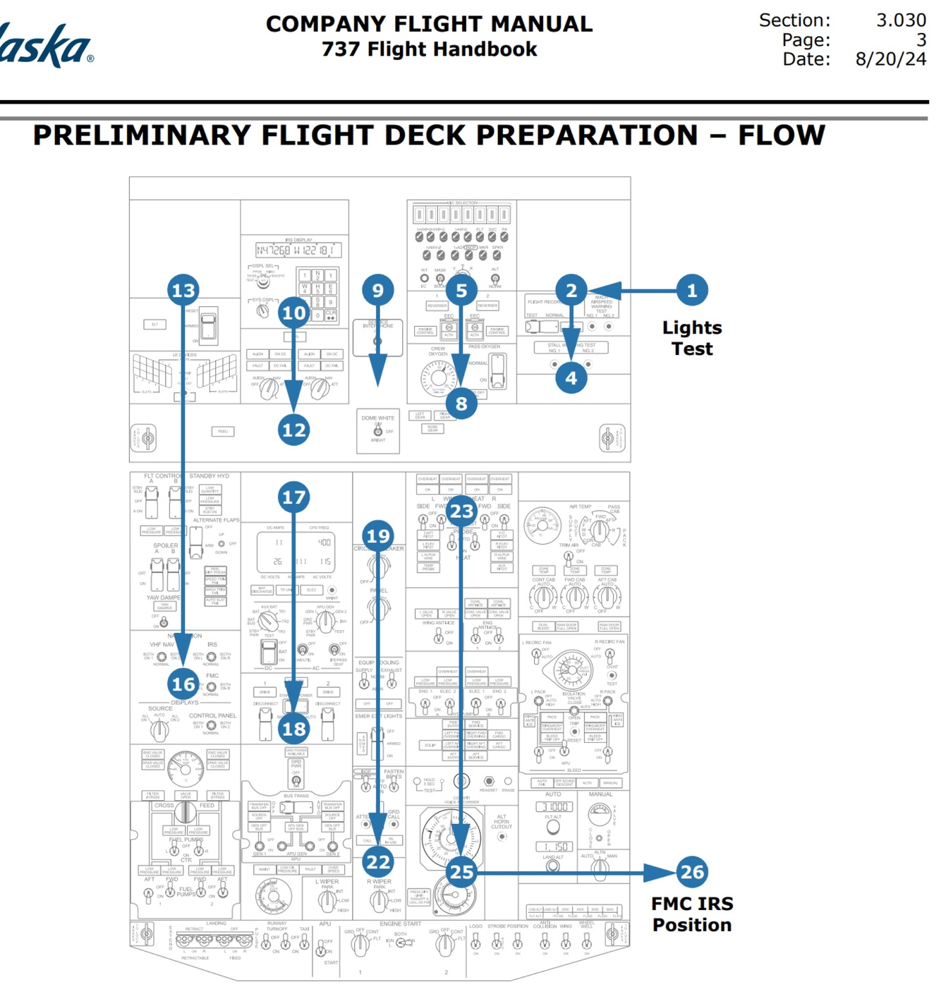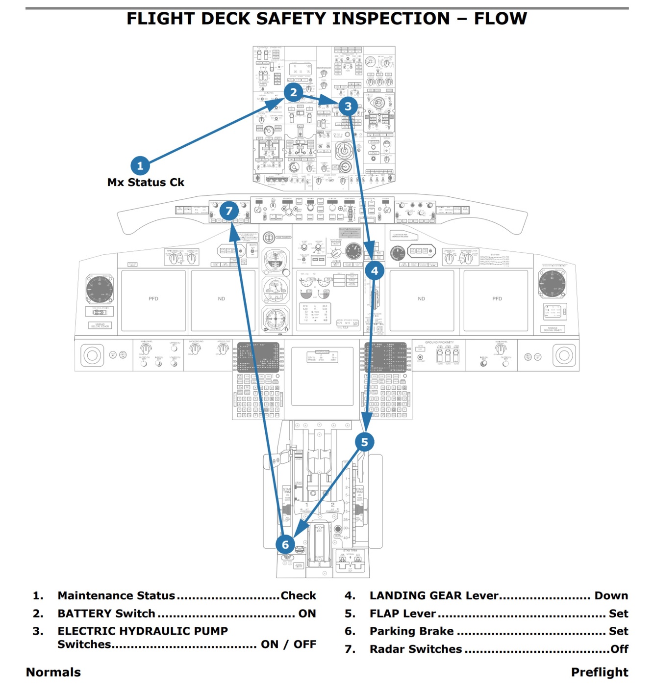 PRELIMINARY FLIGHT DECK PREPARATION - FLOW STEPS