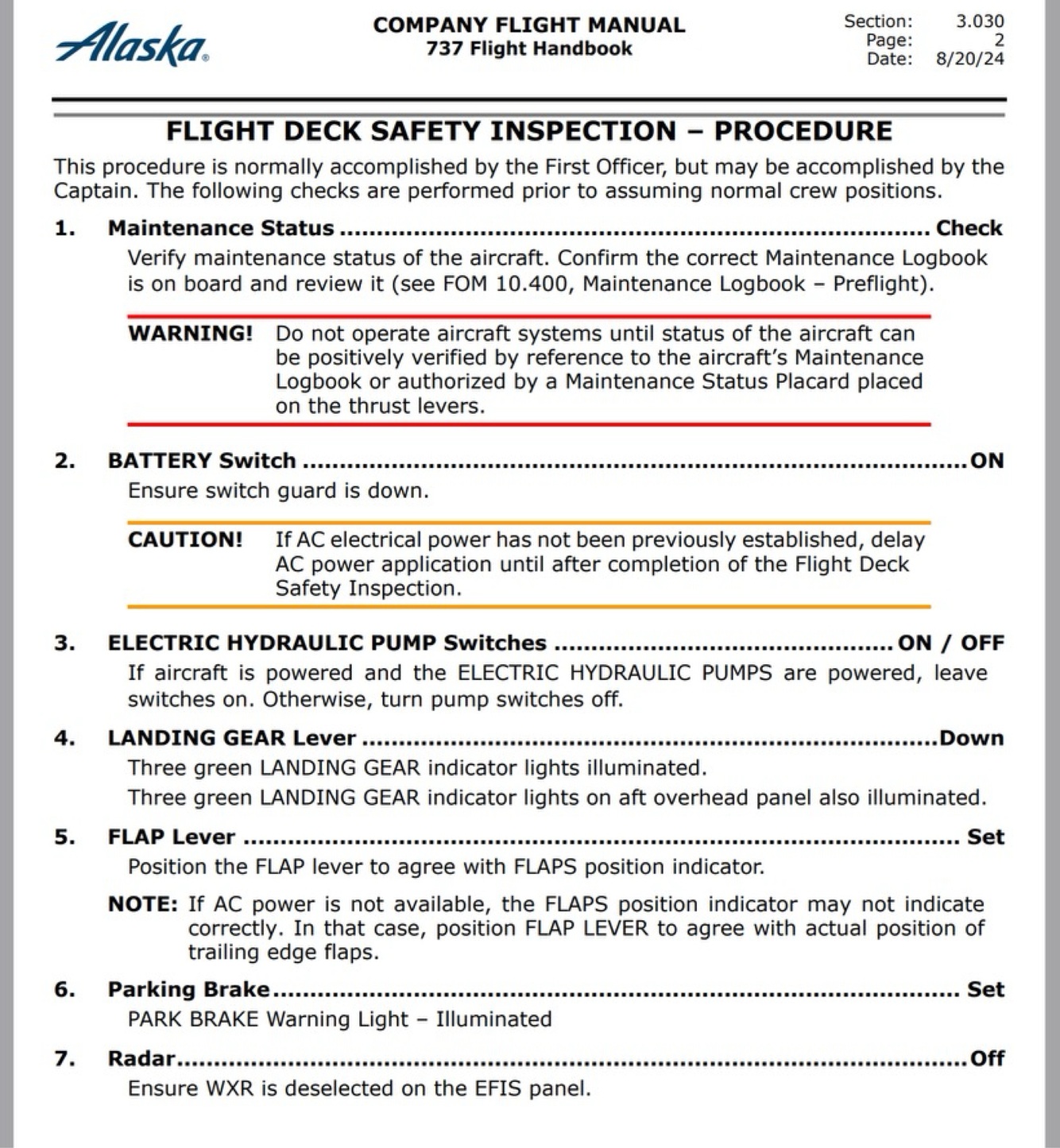 PRELIMINARY FLIGHT DECK PREPARATION - PROCEDURE pg 2
