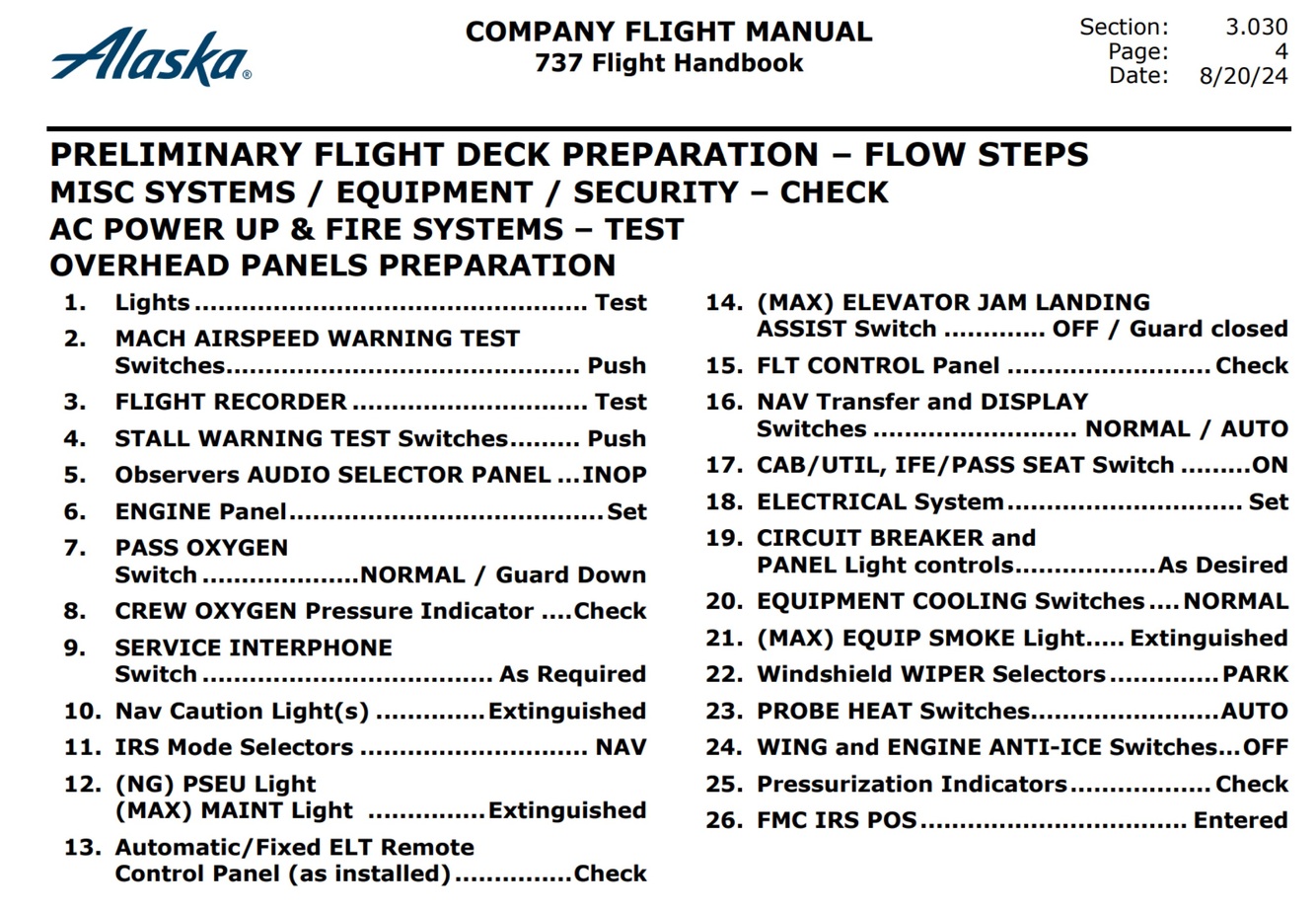 PRELIMINARY FLIGHT DECK PREPARATION - PROCEDURE pg 4