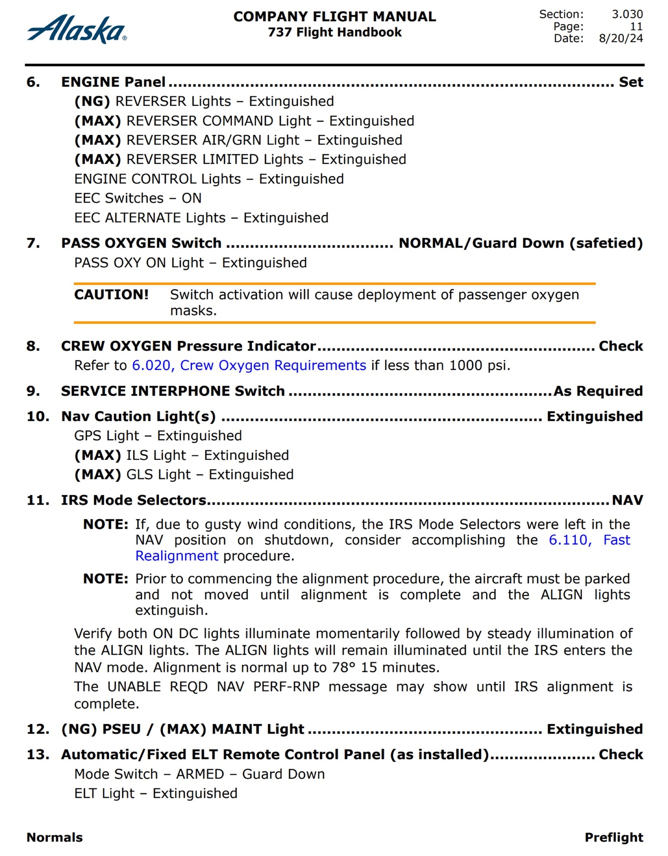 PRELIMINARY FLIGHT DECK PREPARATION - PROCEDURE pg 6