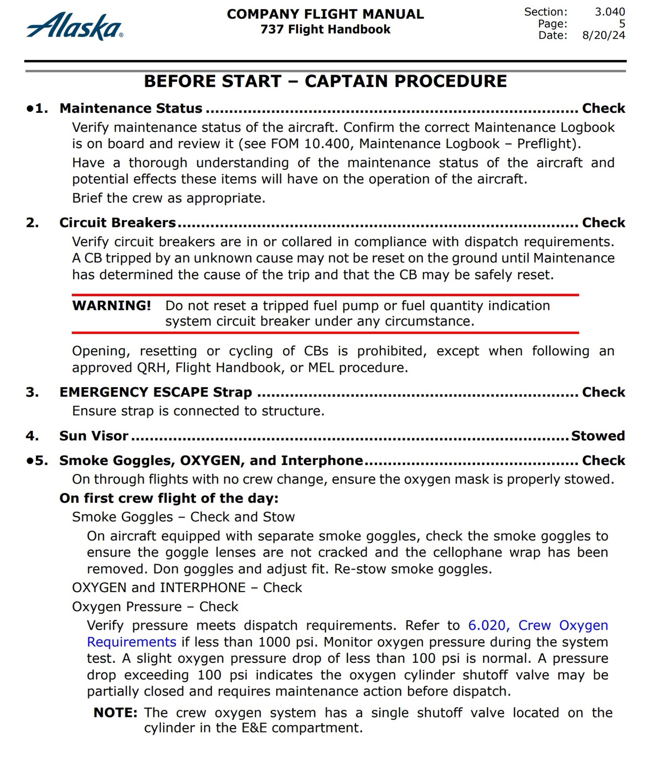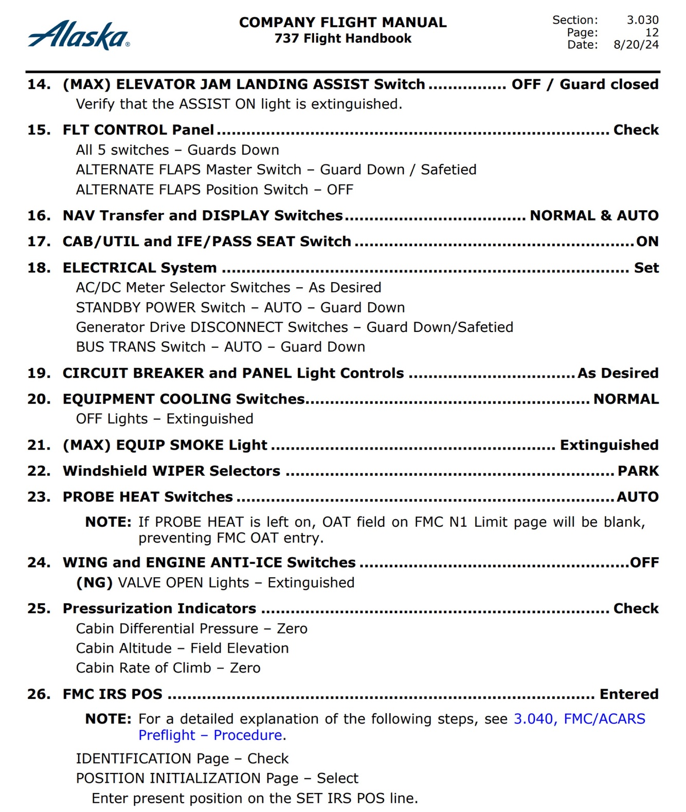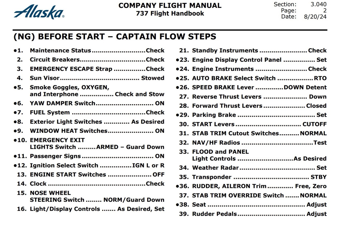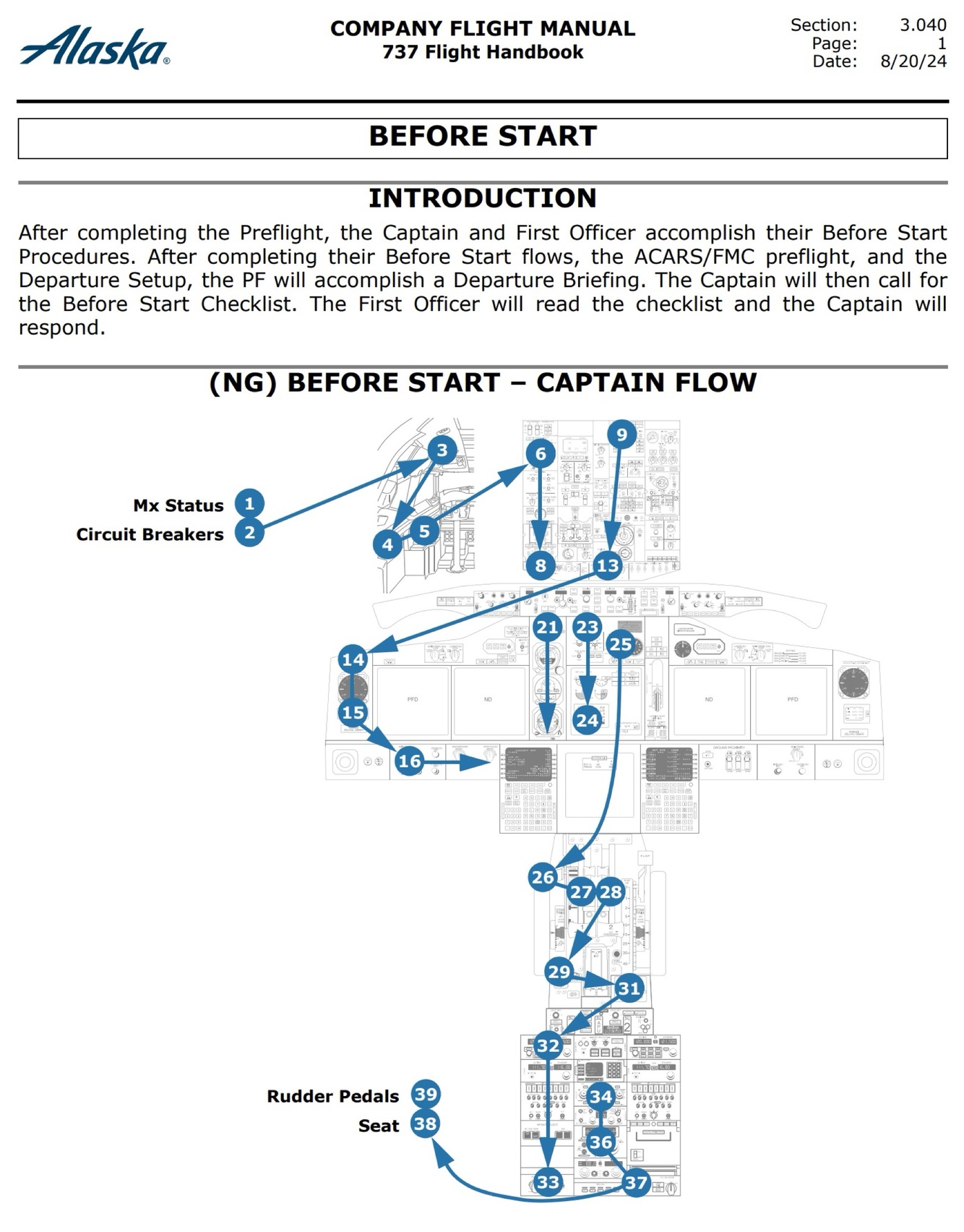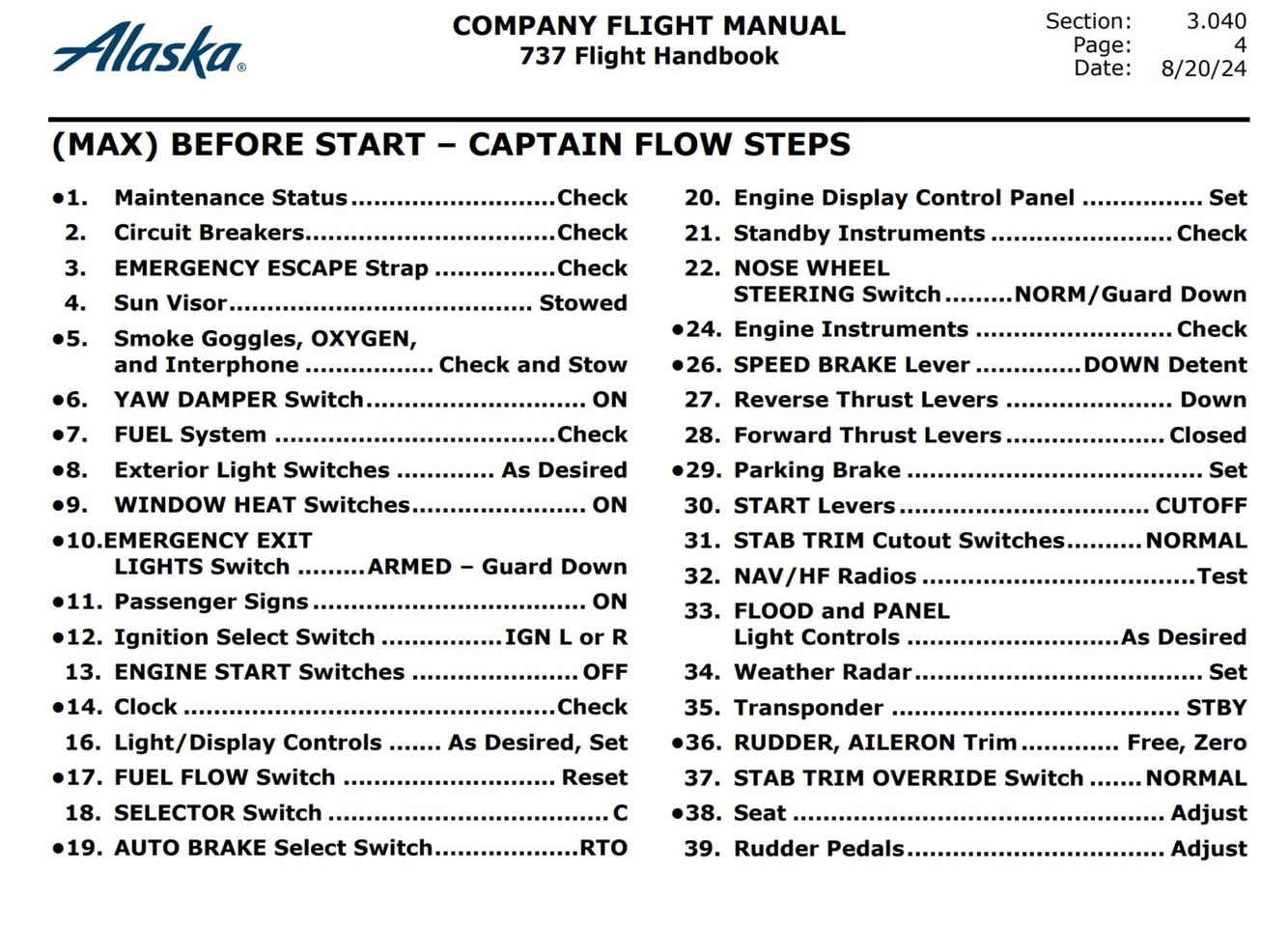 (MAX) BEFORE START – CAPTAIN FLOW STEPS