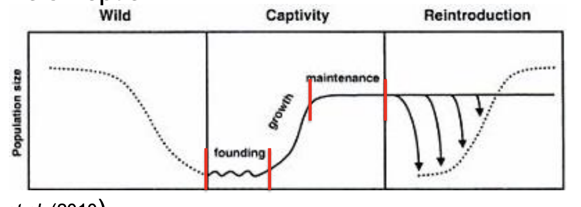 What are the stages of captive breeding ?