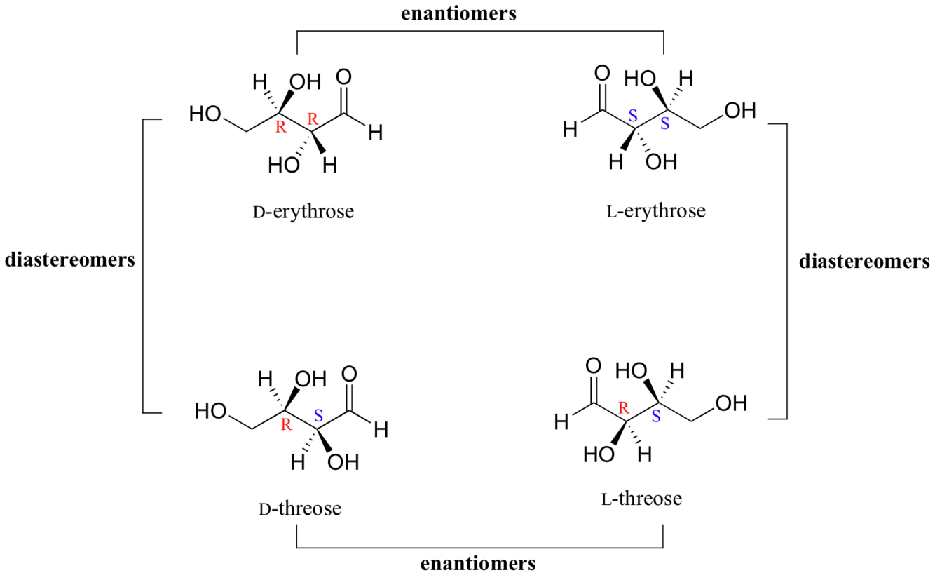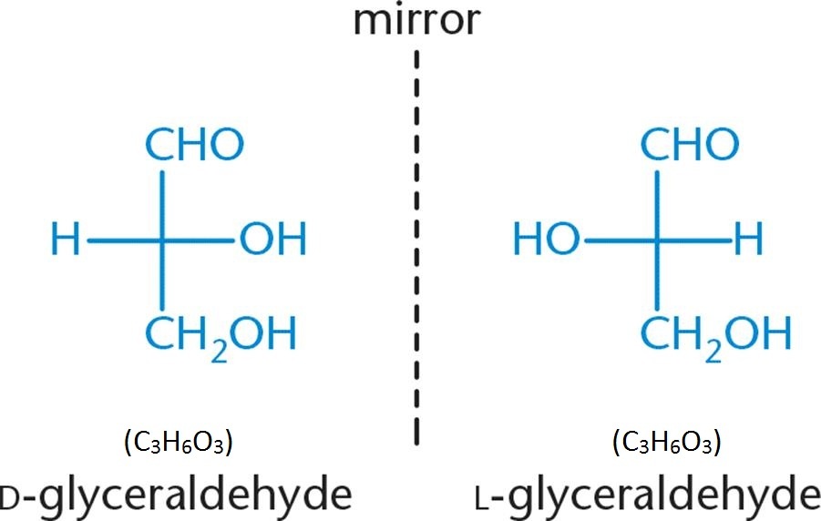 All monosaccharides are assigned the D or L configuration based on their relationship to glyceraldehyde. What does the symbol D or L designate on a carbohydrate?