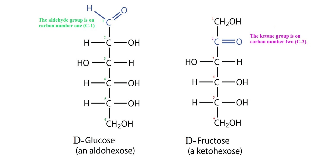 D-fructose has the exact same molecular formula as D-glucose, but has a ketone functional group at one end.